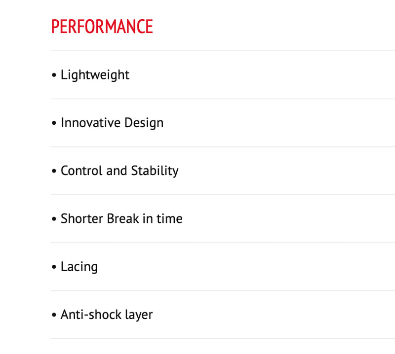 The anatomical shape, lightness and greater flexibility of EDEA boots means more time can be spent performing and less time breaking in the boots. The memory foam adds to the comfort and reduces the breaking in period.