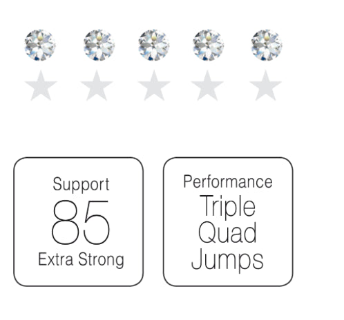 The unique insole made with fiberglass and nylon allows more power transmission and increases the stability. It also allows for the thickness of the sole to be reduced thus lowering the center of gravity and giving the skater even greater control, stability, and feel of the ice. The unique heel design adds further stability. The curve on the heel increases weight distribution, allowing the heel to be in contact with over half the insole giving the skater a sense of oneness with the ice. The increased control and sensitivity combines to allow the skater to perform the most technical routines and moves.