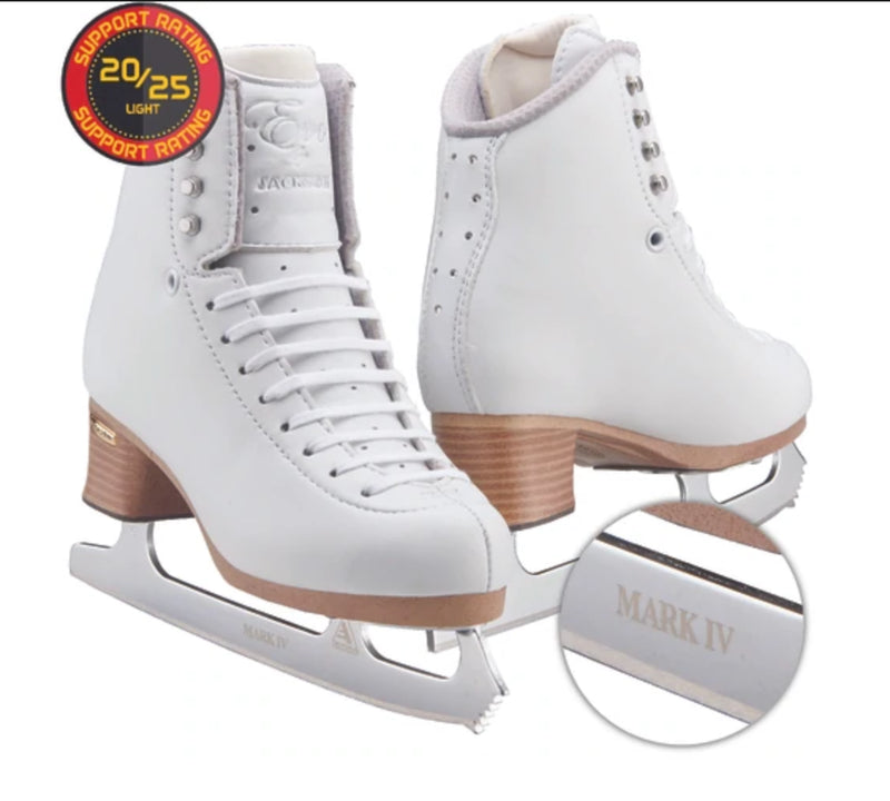 Introducing the Jackson FS2020 Women's Evo with Mark IV Blade Set. This figure skate offers light support for comfortable skating. Say goodbye to discomfort and hello to smooth skating with its state-of-the-art blade set. Upgrade your experience on the ice with Jackson.